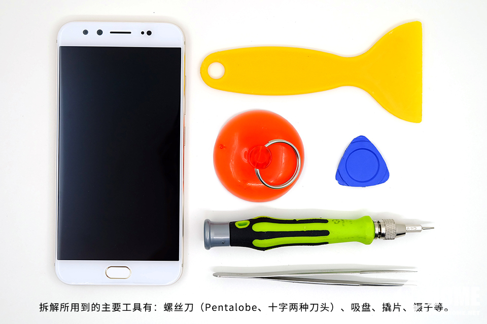 拆解所用到的主要工具有:螺丝刀(Pentalobe、十字两种刀头)、吸盘、撬片、镊子等。