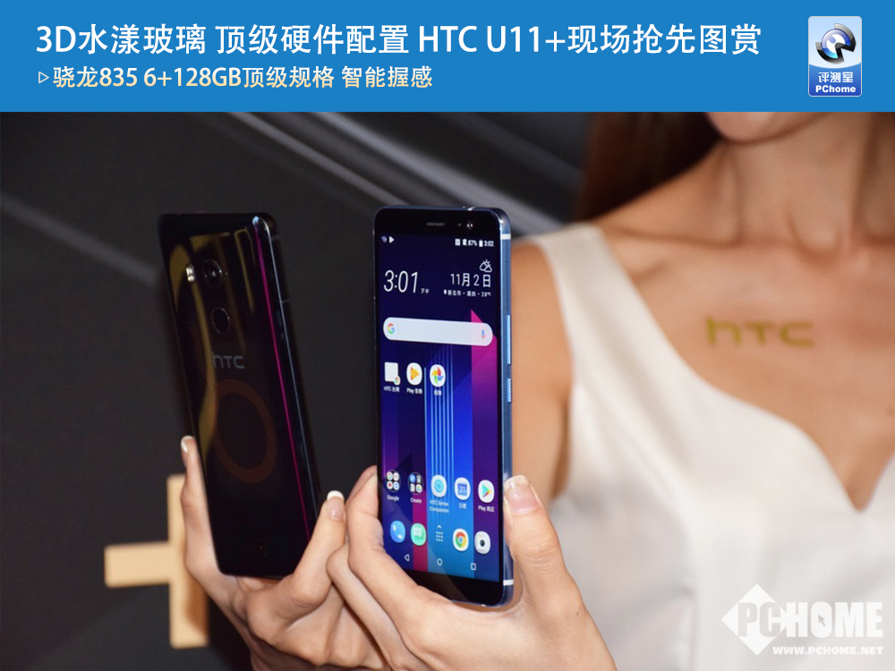 PChome手机频道美图】11月2日,HTC新品发布会正式举行。在本次发布会上,继HTC U11之后的又一款智能手机新品——HTC U11+正式发布。这款手机在延续了U11备受好评的3D水漾玻璃设计元素的同时,加入了全面屏的设计,在软硬件方面进行了全面的升级。
