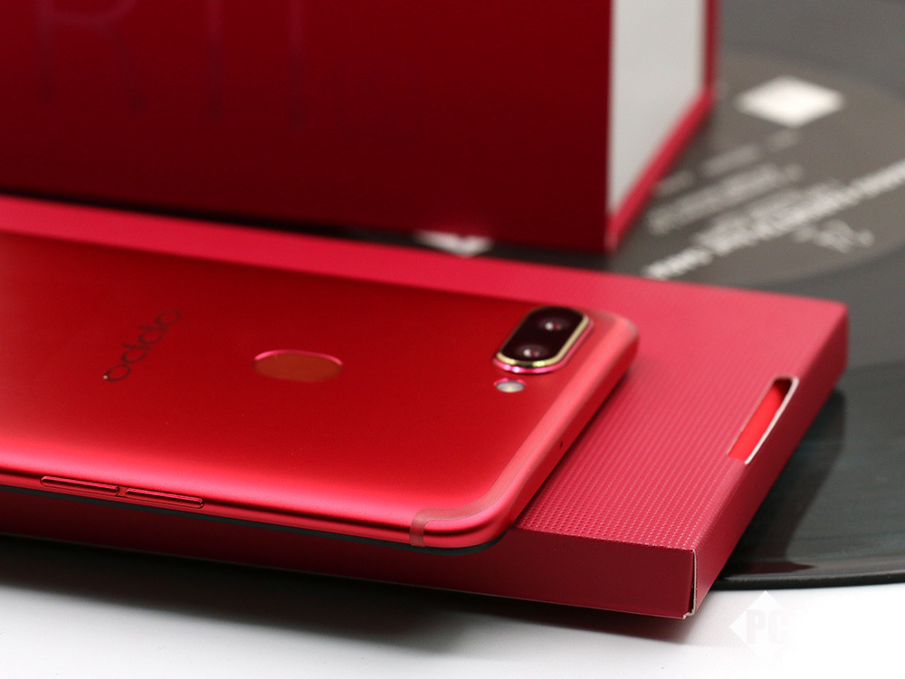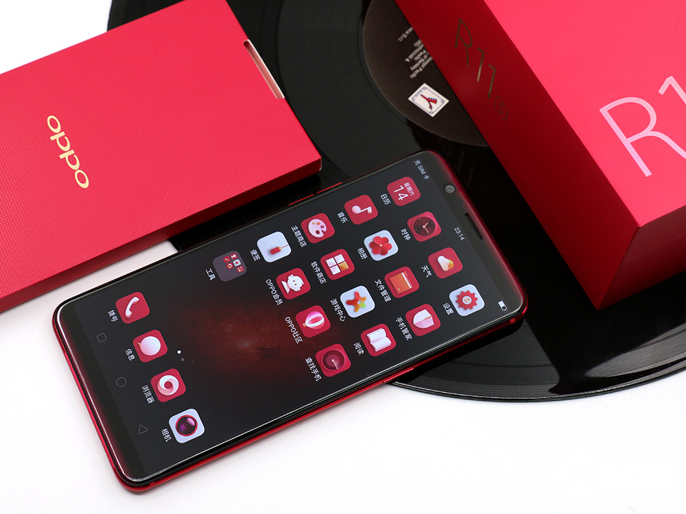 OPPO R11s星幕新年版以OPPO R11s红色版为蓝本打造,它有着星幕屏的特别设计,在主机身和屏幕玻璃间,不会有一条泾渭分明的分界线,而是在红色与黑色之间进行逐渐的过渡。远看有明显的过渡朦胧感,近看的话也能看到内在的颗粒状纹理,在熄屏下与2.5D弧面玻璃结合,甚至可以产生曲面屏幕的视觉效果。