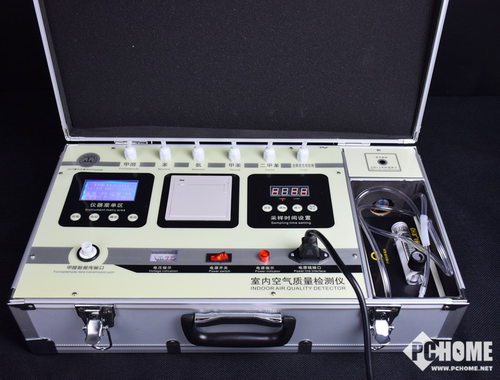 室内空气检测仪:专业级检测设备,能够对空气中的甲醛、苯、氨、甲苯、二甲苯、TVOC、PM2.5等有害物质进行检测。本设备在横评的净化甲醛测试环节中将用来监测空气中的甲醛浓度变化。