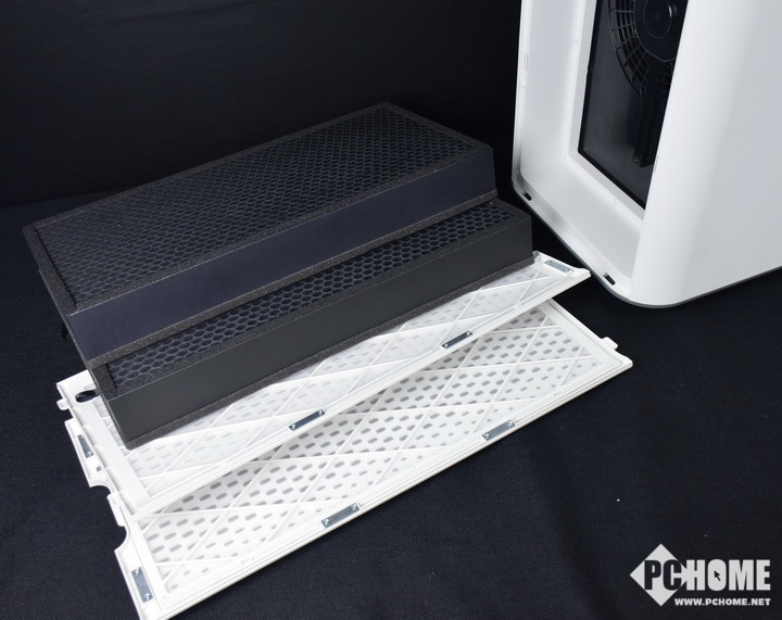 不过在这里还有个有意思的设计,初效滤网是与机身的挡板固定在一起,拆下挡板后初效滤网一同被拆下。优势自然是方便了,因为可以省下些许时间少拆卸一块滤网了。