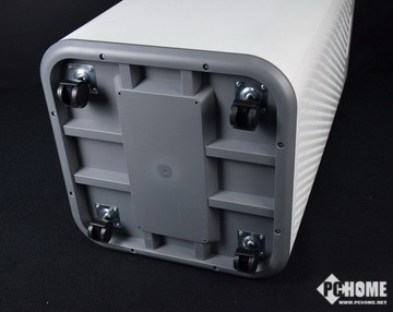 亿力CloudAir空气云KJ800F-K8机身体积较大,考虑到搬运的便利,亿力底部有4个可360°转动的滚轮,任何方向都只需要推动的就能够自由的快速的移动,机身两侧还有抬手设计,在家里可以很轻松的搬运这个大家伙。