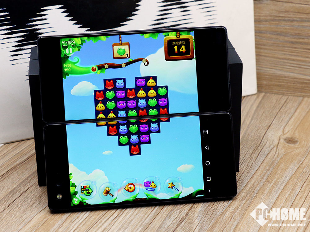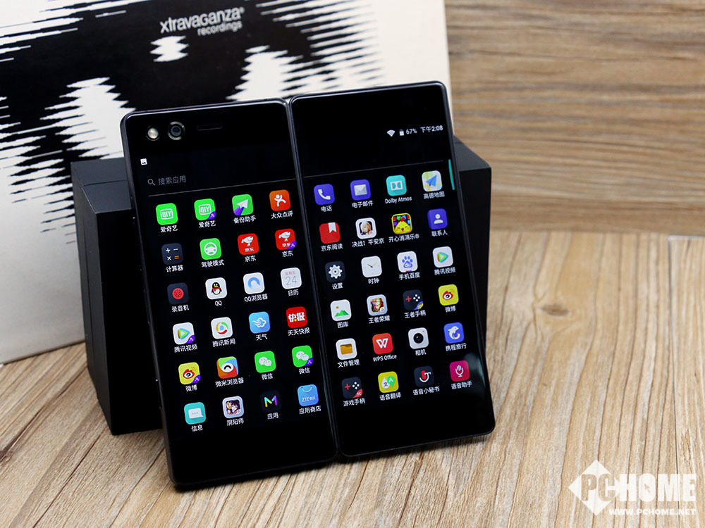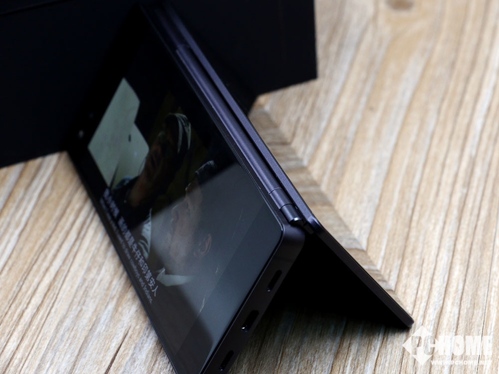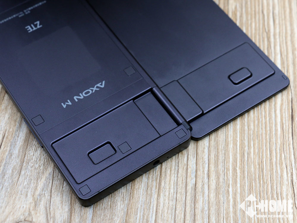 在外观方面,中兴Axon M采用了可折叠式的双屏幕设计,两块屏幕均为5.2英寸1080P分辨率。在折叠状态下手机的两面都是屏幕,翻转之后加起来就变成了一块6.8英寸显示屏,配合适配应用就可以当做一部平板电脑使用。采用了横向翻转的折叠设计,正反两面其实都是屏幕,上图中的屏幕其实是折叠屏幕处于机身背面。而摄像头和听筒则在另一面屏幕上。屏幕的开合角度从0-180度自由旋转,阻尼适中,开合非常方便。使用时可以根据应用调整角度。