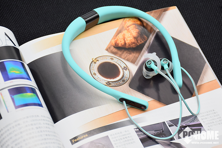 颈挂式的造型设计使得这款耳机看起来时尚气息十分浓郁,颈环的弯曲度符合人体工程学设计,佩戴时不会有受挤压的不适感,也不会过于松弛影响使用,颈环表面由类肤材质打造,触感清爽柔软,运动久了大汗淋漓后也不会感到闷热黏腻。此外值得一提的是,这款耳机具有IPX5专业级别的防水性能,可以真正做到雨水不沾。