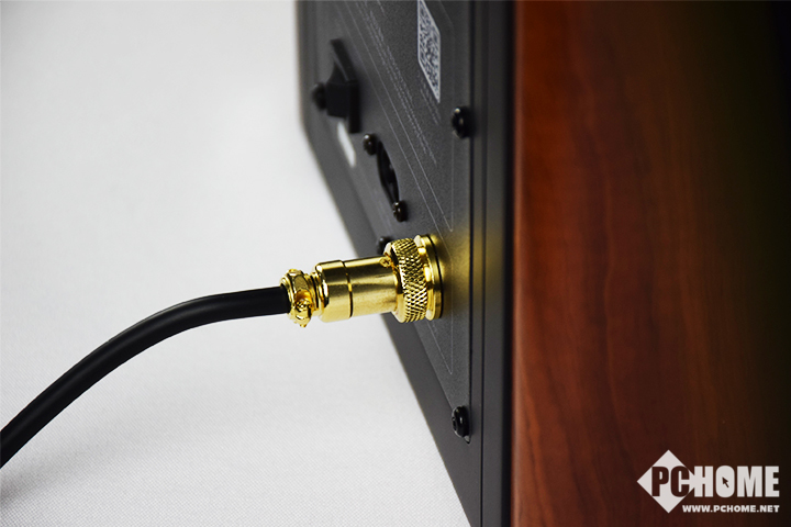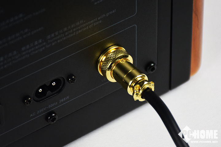 主副音箱之间是通过做工相当扎实的4芯连接线组合在一起,肉眼可见接头部分采用了低耗损镀金工艺,惠威音箱常见的锁止设计能够确保接头与接口连接牢固。另外M300采用蓝牙4.0块,可以轻松与手机互联。