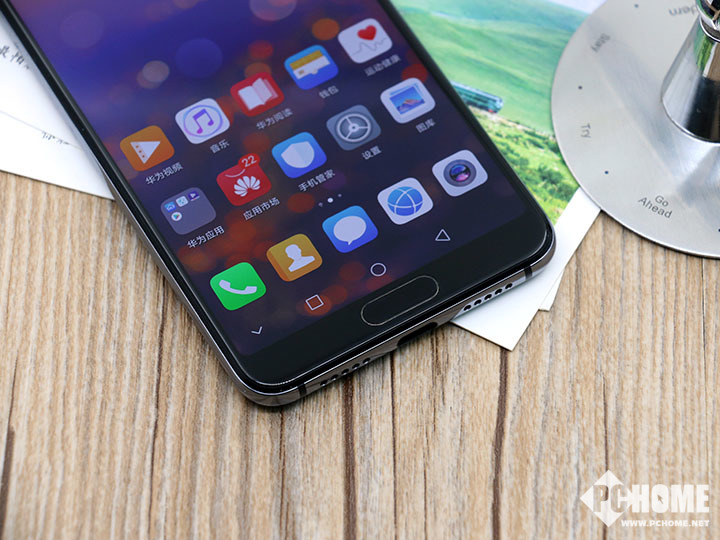 下巴设计则明显有着自己的设计考量, 华为P20 Pro在这里配备了正面的指纹识别区域,让这部分区域不再是个光秃秃的下巴,而是赋予了它实用功能。正面物理指纹配全面屏的设计是有利有弊,它是目前所公认的最佳体验的指纹识别方式,即使屏下指纹的出现,也难以撼动。不过物理指纹需要占据正面的部分空间,对于极限的屏占比打造稍显不利。在这个正面指纹上,华为还赋予了其手势操控功能,比如轻触返回,长按回主页等功能。