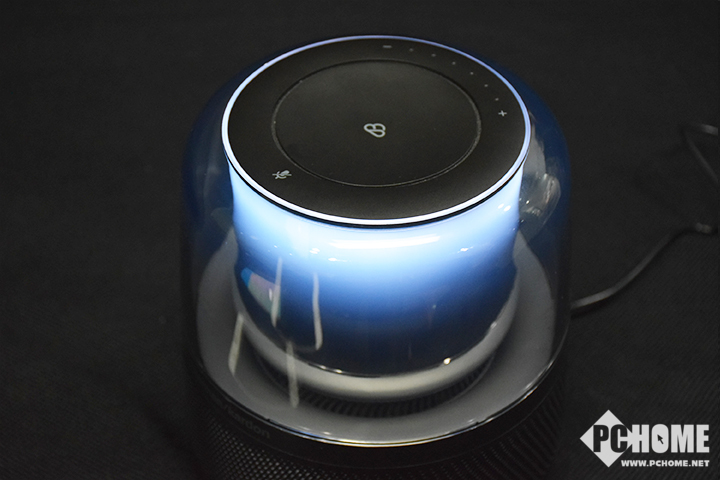 因为是旗下首款植入腾讯云小微系统的产品,为了收录用户的指令,音乐琥珀内置具备噪音消除功能的四麦克风阵列,可接收来自4个不同方向的声音,以确保听清用户指令。而且音乐琥珀在播放音乐的同时也能听到语音指令,不用刻意提高嗓门。半透明腔体下方被黑色网格包裹,整体和谐统一,背部电源接口和系统重置孔则非常简洁。