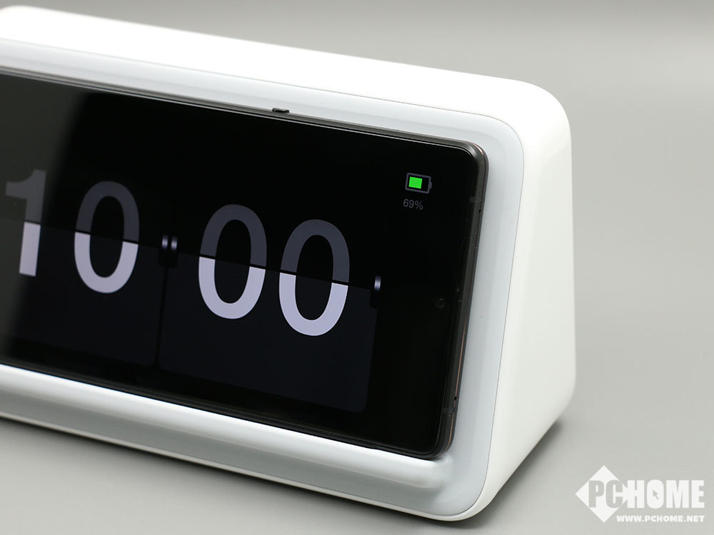 外观方面,坚果闹钟式无线充电座采用简洁的梯形设计,整体为白色配色,百搭各种家居风格。最有趣是,将坚果R1手机置于坚果闹钟式无线充电座上时,手机不仅可以快速充电,而且屏幕会自动显示当前时间,像融为一体的闹钟。此外,坚果闹钟式无线充电座还可以为其他支持无线充电的手机提供无线充电,功率最高可达10W。