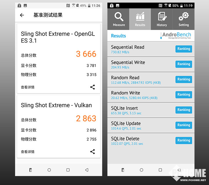 在比较偏重图形性能表现的3DMark跑分中,HTC U12+的Sling Shot Extreme场景测试得分并不很高, HTC方面对此似乎是欠缺优化。但跑分并不决定一切,性能高低还是要看实际体验。其存储的读写速度表现相当给力,尤其是在随机读取速度上。而这完美得体现在了平时的使用在,其应用响应速度和游戏加载速度均十分迅捷。