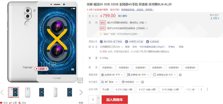 与小编手机售价799元的红米6相同,荣耀前一段时间发布的荣耀畅玩6X也是799元起手,不过这款机型并不是全面屏设计,所以较红米6略逊一筹。