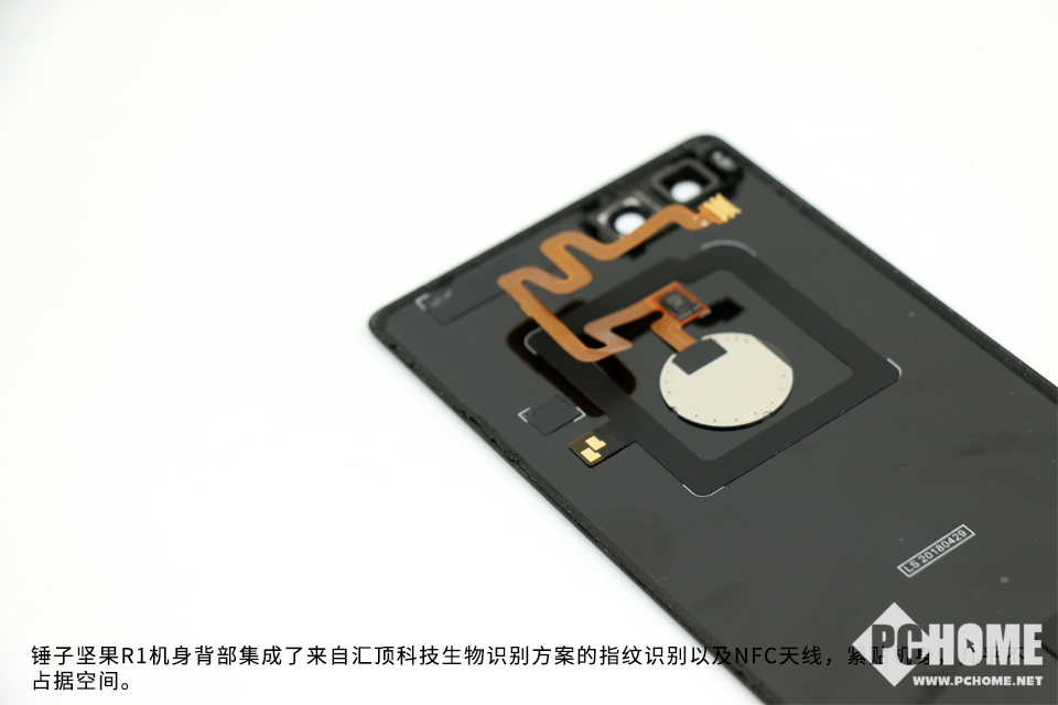 锤子坚果R1机身背部集成了来自汇顶科技生物识别方案的指纹识别以及NFC天线,紧贴机身,几乎不占据空间。