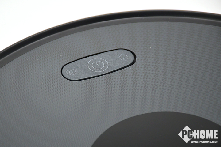 浦桑尼克LDS M6上盖面板主体为钛灰配色,表面有黑色小点密集分布,外观上有类似真皮产品的质感,不过更具金属光泽,控制面板区域相比老款产品更简洁直观,只有“定点清扫”、“开关机”和“智能回充”三枚按键。