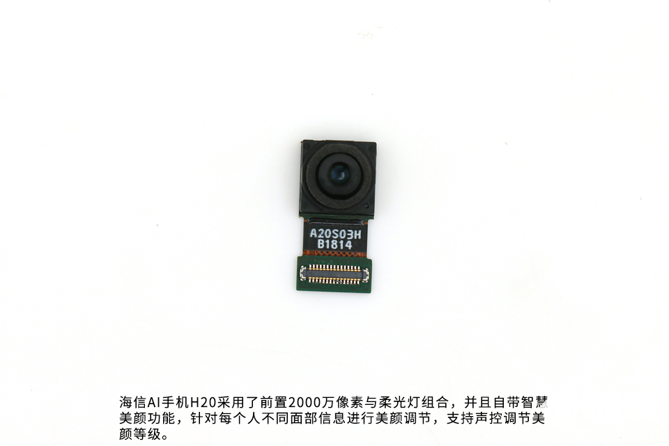 海信AI手机H20采用了前置2000万像素与柔光灯组合,并且自带智慧美颜功能,针对每个人不同面部信息进行美颜调节,支持声控调节美颜等级。