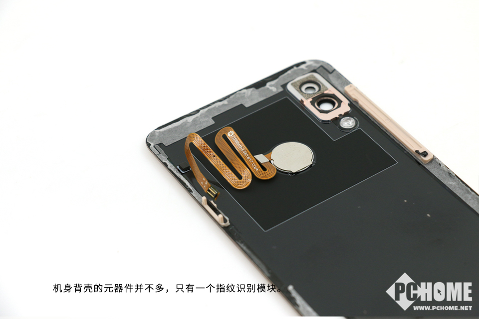 机身背壳的元器件并不多,只有一个指纹识别模块。