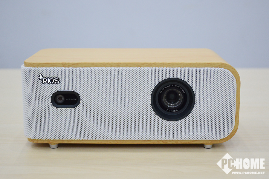 颜值上看也是属于走萌系路线,灰白色的网纹布加上木纹形成的撞色,再加上圆滑的边角细节处理,整体风格显得较为活泼,跟不少同类产品的“冷艳”风格迥异。神画Q1的正面有一大一小两个镜头,大镜头毫无疑问是输出画面的主镜头。小镜头则是用来负责隔空触控、自动校正和自动对焦等功能的关键设备。