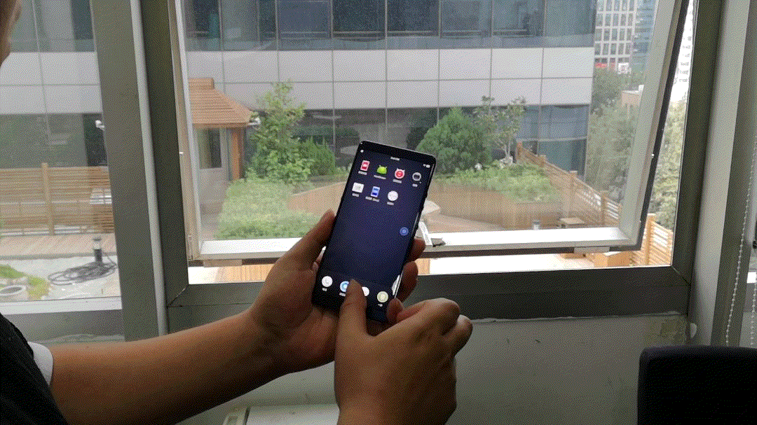 要想进入无限屏模式,我们只需要从手机底部滑动至中间部分停顿,就可进入无限屏模式。在无限屏模式中我们可以通过左右上下移动手机来实现快速的切换任务、快速进入应用、快速自拍、快速进入地图等操作。