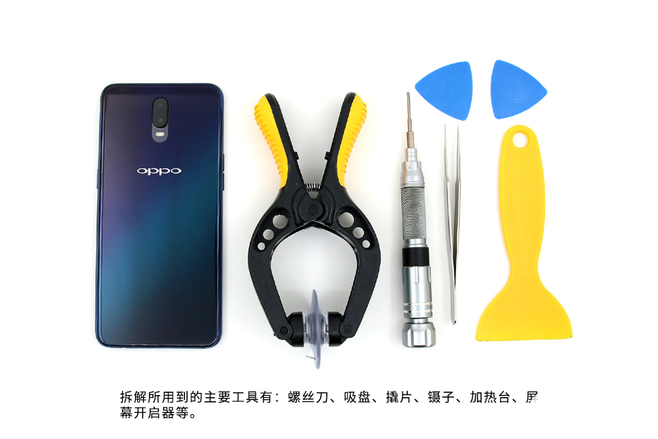 拆解所用到的主要工具有:螺丝刀、吸盘、撬片、镊子、加热台、屏幕开启器等。