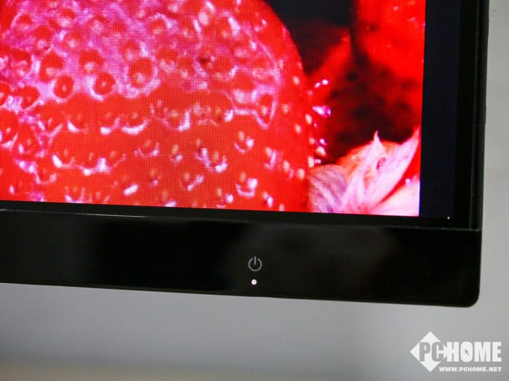 整体造型大气简约,边框为黑色面板,经过钢琴烤漆处理,质感还是不错的,不过比较容易沾染指纹。显示器右下角放置了一颗隐藏式的电源指示灯,用于显示工作状态(看起来像是触摸的物理电源开关,但并不是)。