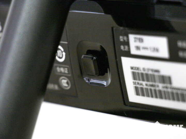 按键方面,这里要吐槽的一点是,开关键并不是前述的屏幕右下角的指示灯位置,而是位于正面Logo对应的背后位置,为一个五维摇杆按钮,按下去即可打开电源开关,四向方向键可以调节显示器的OSD设置。