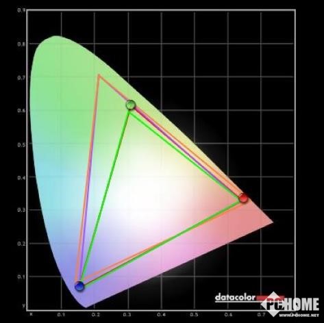 在上面的色域视图中,红线代表飞利浦纤翼系列271E9显示器的实测数据。可以看到,红线对绿线(sRGB)实现了较好的覆盖,达到了99% sRGB的覆盖。与紫色线(AdobeRGB)比较,实现了77%的覆盖,绿色部分相对覆盖不足,与橙色线(NTSC)比较,在紫色部分略好,但在绿色部分依然不足,达到了72%的NTSC色域。总的来说,271E9的色域表现还是可以的。
