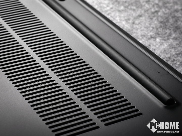 机身D面采用了双排、大面积密集开孔的散热格栅,同时配合长条状的脚垫,使用时可以使机器底部与桌面之间有一定的间隙,保证了良好的进风。