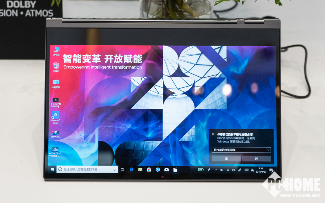 2018联想创新科技大会上,全新的第七代YOGA Pro亮相,在经典的表链式转轴上再次进化,增加了功能性设计,带来了独特的音响式转轴。转轴部分包含两个指向性的高频扬声器,配合机身D面的两个低频扬声器,总共四个扬声器总功率达到7W,并且经过了杜比认证,带来了出色的杜比全景声音效。