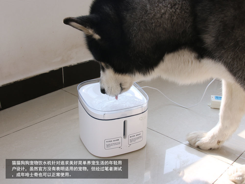猫猫狗狗宠物饮水机针对追求美好简单养宠生活的年轻用户设计,虽然官方没有表明适用的宠物,但经过笔者测试,成年哈士奇也可以正常使用。