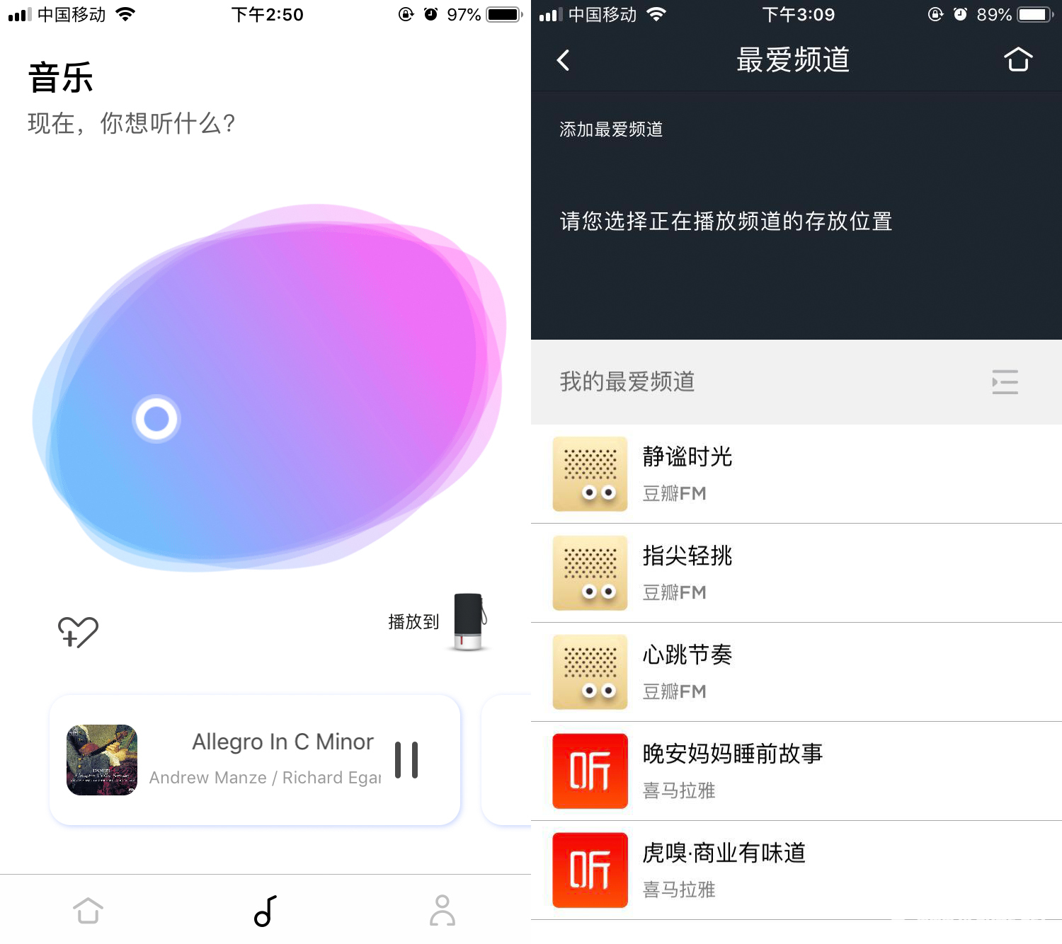除了语音点歌,Zipp 2支持的App点歌和隔空播放功能也值得一提。在App中,用户可以拖动圆形到不同的色块来获取不同风格的音乐,例如红色代表热烈,蓝色代表舒缓。用户还可以将喜欢的音乐设为收藏,并可直接语音控制播放5个收藏频道当中的一个。