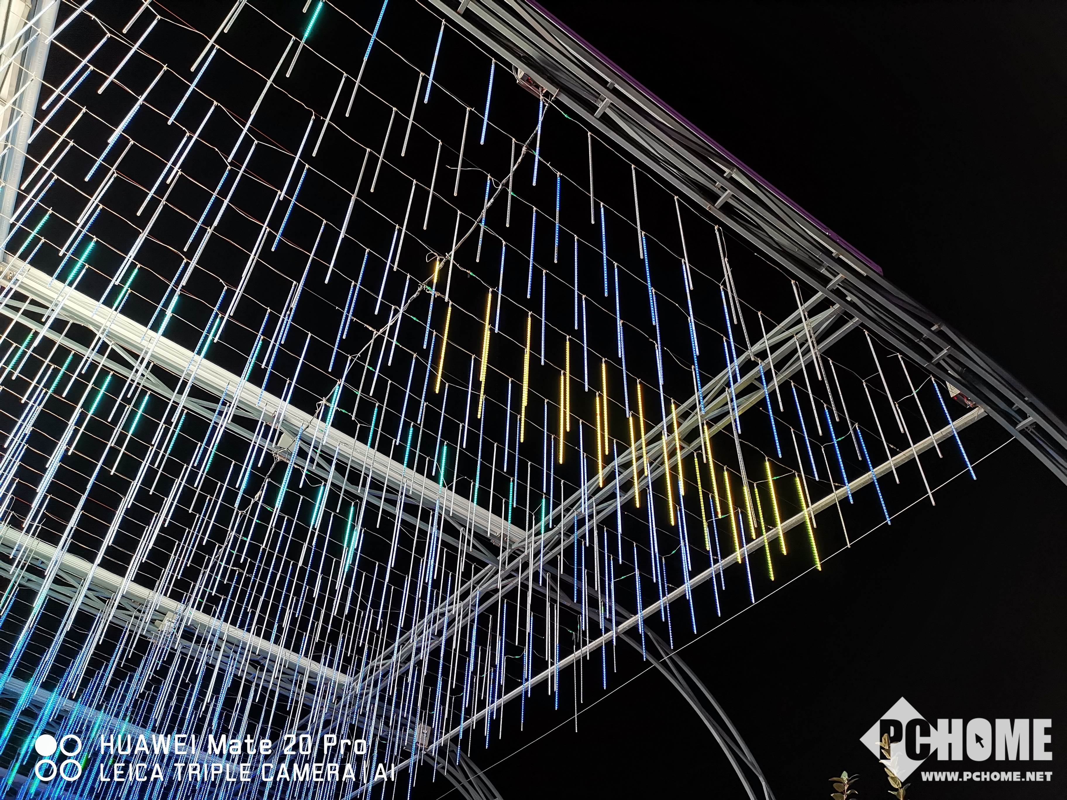 到了夜晚,Mate 20 Pro的摄影能力则被彻底释放,夜视仪再次上线。即便不打开“超级夜景”模式,大底大像素所带来的画面进光量也是其他竞品无法企及的,同时得益于算法的提升,整体的画面曝光和噪点控制都是数一数二。不仅如此,画面细节也得到了很好的保留,放大后的纹理细节还原到位。而打开了超级夜景模式之后,画面亮度则是再飙升一个档位,普通模式下的暗部画面表现更加明亮,而高亮部分虽然也有一定程度的增强,但是整体控制还算自然,并没有与画面形成明显的违和感,相比于前代的P20 Pro来说整体算法调教要更为优秀。