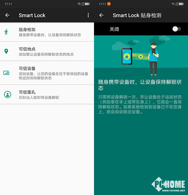 人脸识别则是作为辅助的解锁方式,它在安全性上不及指纹,但是解锁速度更具优势。另外Moto P30还提供了智能解锁功能,它可以检测到特定环境,比如地点识别功能,在手机处于家庭环境中,就会保持在解锁状态,来保证方便的使用环境。