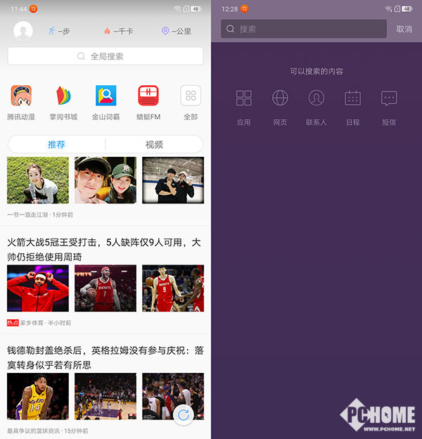 负一屏具有诸多功能,它集成了应用快捷启动、计步器、新闻推荐、搜索等多种功能,上手之后能够非常方便使用,尤其是在安装大量的应用后,在这里通过AI的学习,能够让你第一时间找到你想打开的应用。而在感觉无聊时,次页面的推荐新闻,也肯定能够让你找到感兴趣的东西。