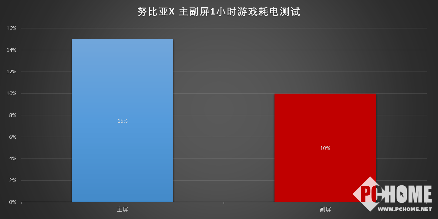 另外,努比亚X的OLED副屏,在使用时要更为省电,我们将正副屏幕调整到相同的50%亮度,进行1小时的游戏对比测试。测试结果表现,副屏有着更出色的续航时间,在晚间的暗光环境下,多使用副屏能够在护眼的同时,大幅提升努比亚X的续航表现。