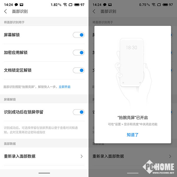 生物识别功能上,支持人脸识别和指纹识别,两种识别方式都能够快速解锁手机。其中人脸解锁功能在使用中尤其方便,结合Flyme系统中的抬手亮屏功能,让解锁变得十分便捷,只要将手机翻起,即可直接识别解锁亮屏,堪称是最快速的解锁方式。