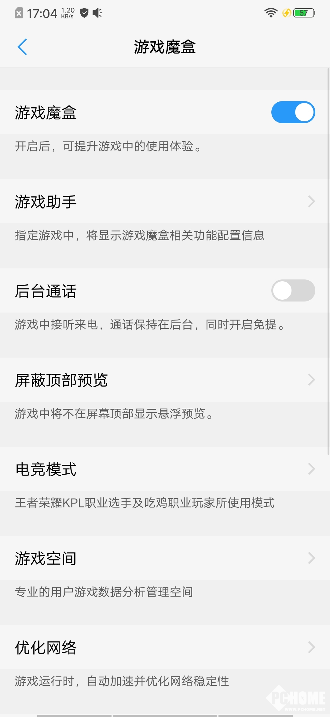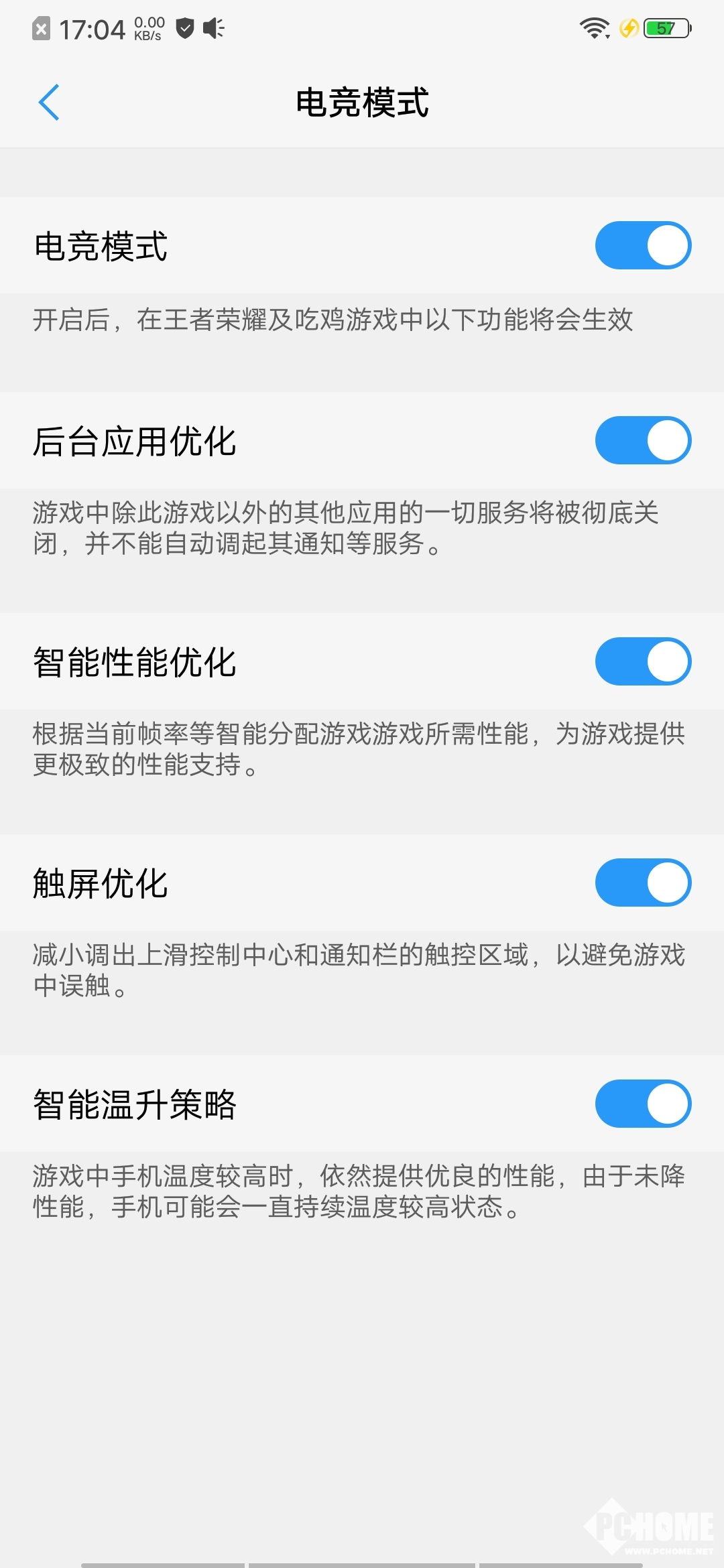 全新的Game Cube游戏魔盒中将电竞模式升级到了2.0版本,通过对于触屏优化、智能性能调节、后台应用优化、智能温升策略四大功能来实现游戏时的全方位性能保护,并且可以主动选择是否开启优化选项,为用户带来开放、自主的游戏环境。