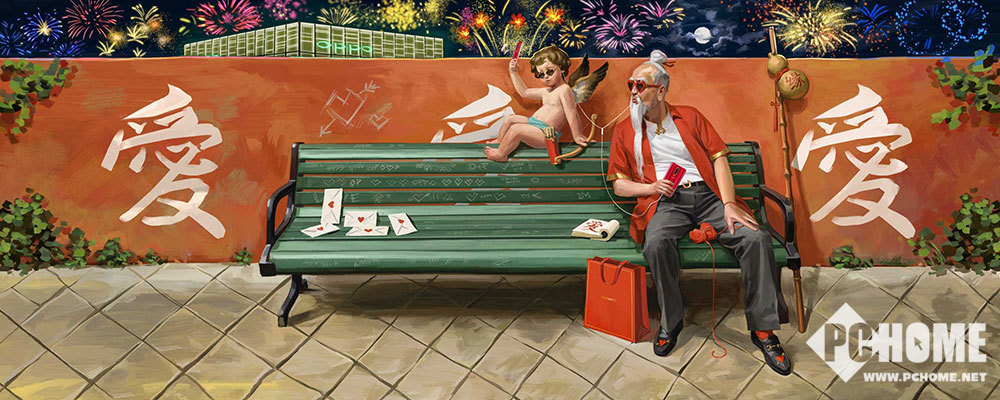 《爱》由 Ignasi Monreal创作:月老和爱神丘比特共同坐在长凳上,他们早已准备好情书和红线,就等为你送出中西双份甜蜜的爱情。转发此微博,新的一年遇上对的人。