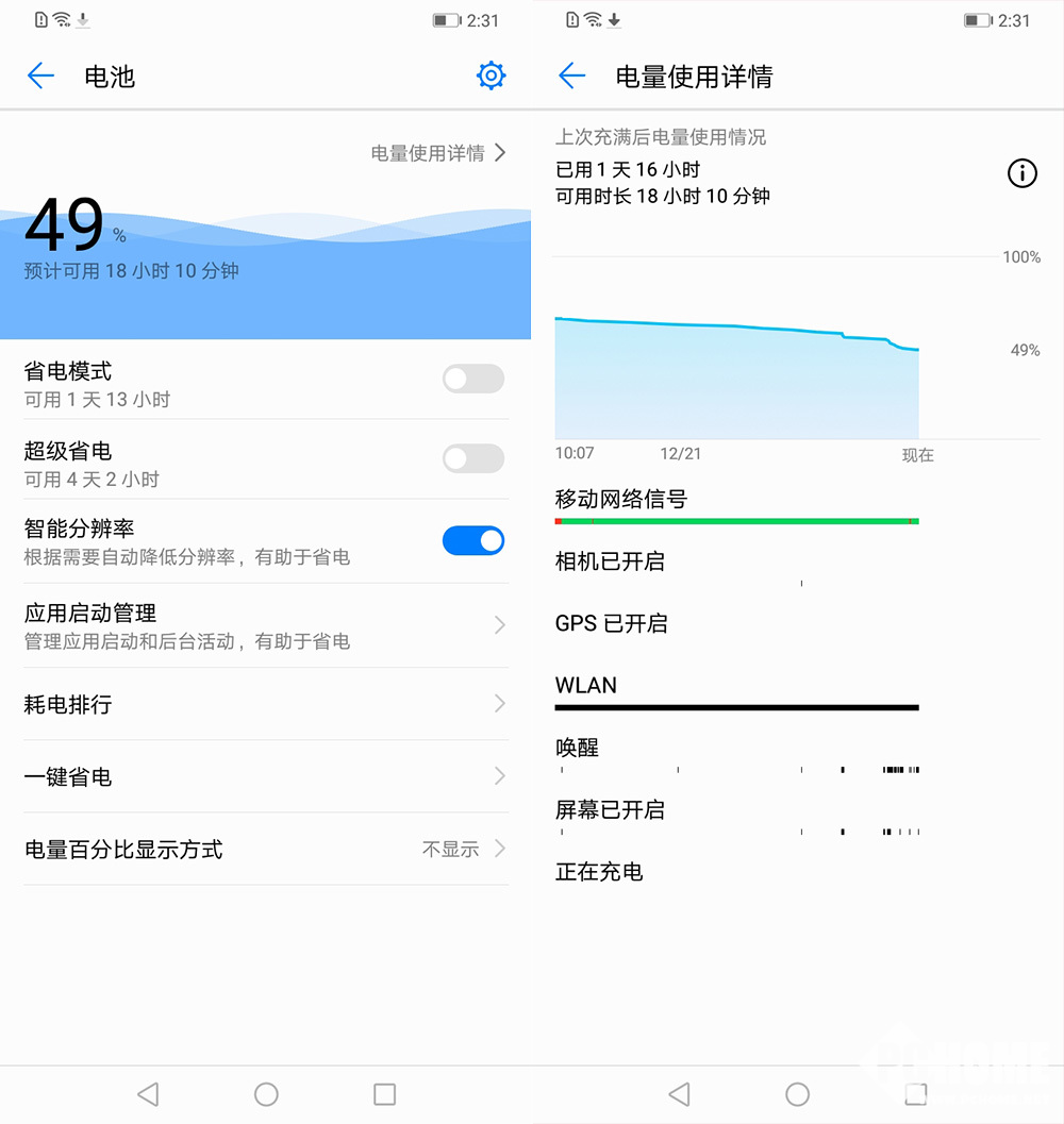 笔者轻度使用一天半后,还剩余49%的电量,续航能力非常客观,对于重度手机用户来说,续航一天也毫无压力。这里笔者给有着续航焦虑的年轻人推荐这款续航怪兽,出门一整天也无需携带充电宝或者到处找插头。