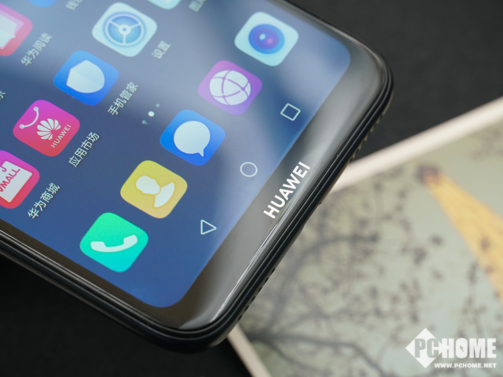 华为畅享9正面搭载了一块6.26英寸的1520*720分辨率屏幕。像素密度不算太高,但在正常距离使用时,也感觉不到颗粒感的存在。华为畅享9采用了时下流行的珍珠全面屏设计,顶部空间被最大化利用,只留下中间的前置摄像头凹槽,听筒也被做成了隐藏式的设计。