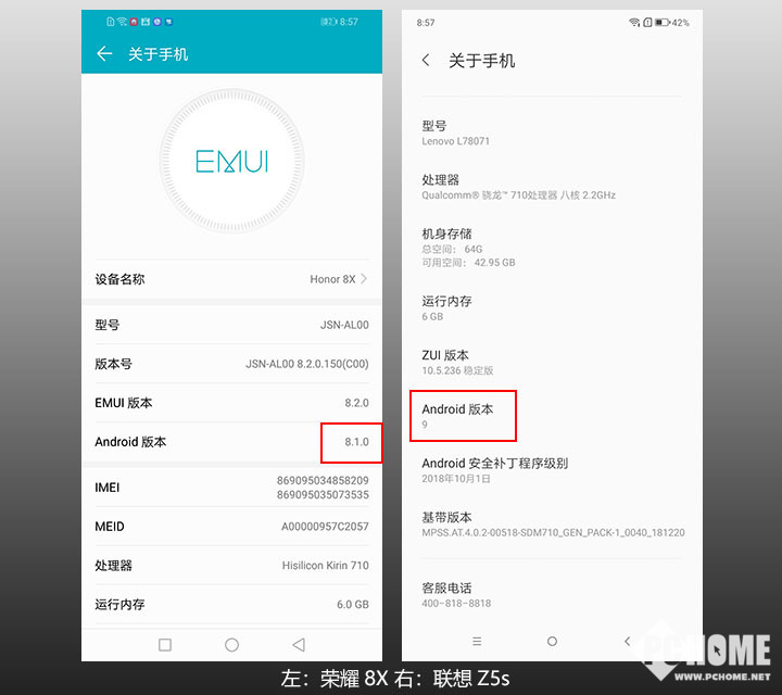 | 联想Z5s | 荣耀8X | |