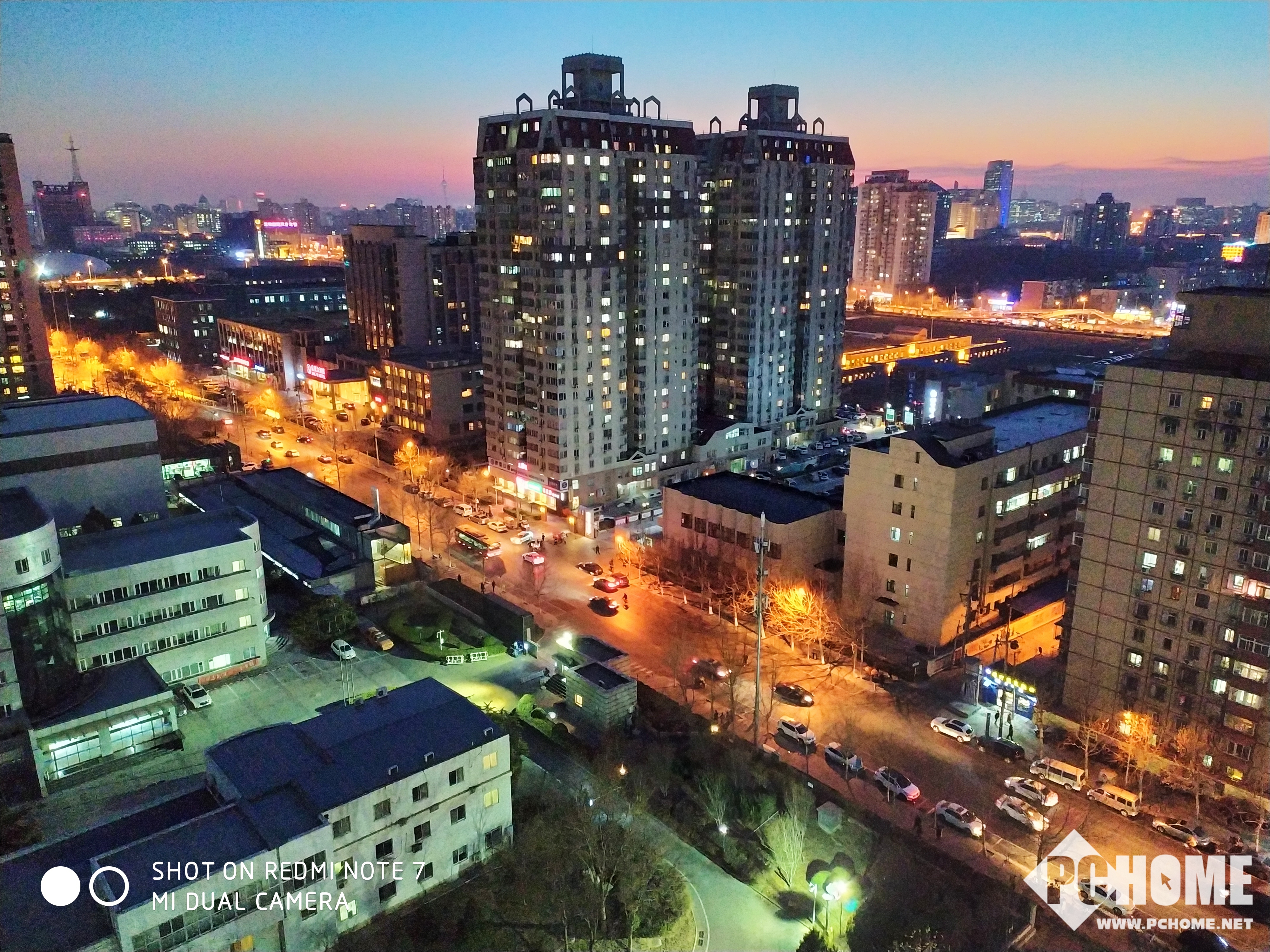 到了夜晚,Note 7的表现着实让人惊讶,打开自动HDR以及AI相机之后,Note 7的画面纯净度很高,而且对于光线的曝光控制也非常到位,整体的画面观感还是很不错的。但是相对来说宽容度有些许欠缺,使得高对比度环境下的楼宇亮度不足,一定程度上影响了效果。