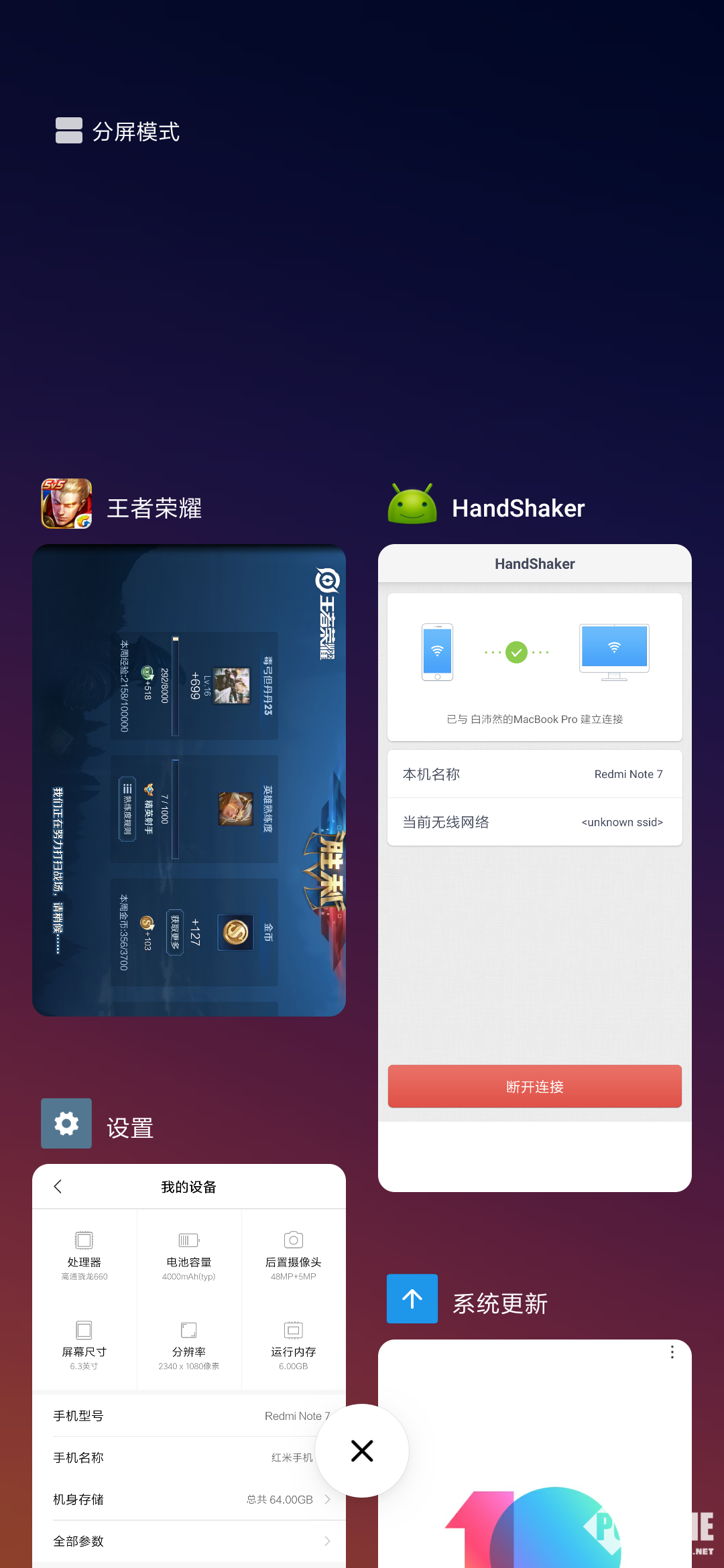 在系统方面,Redmi Note 7搭载了正式版本的MIUI 10版本,基于Android 9版本系统,所以在稳定性方面也要更优秀。但是在功能性方面却没有过多地改善,更多还是将现有的功能进行完善、稳定。