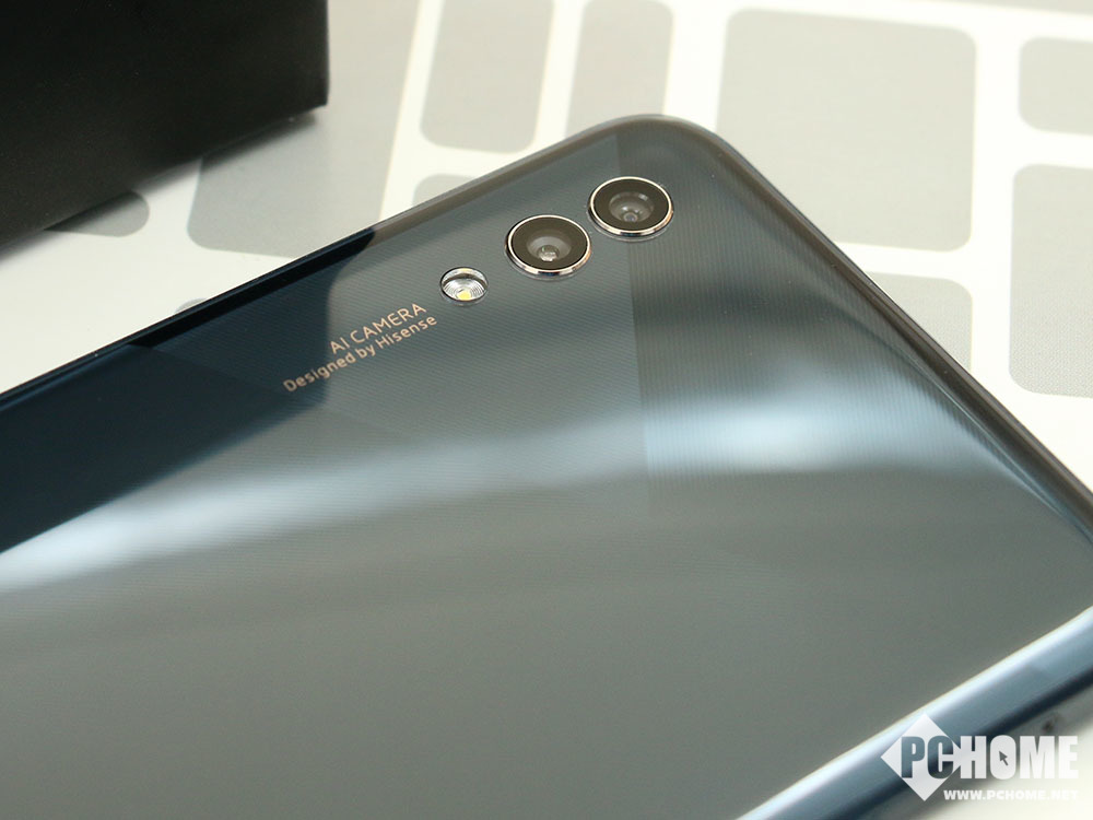 海信手机金刚5沿用了水滴屏的设计,6.22英寸的大屏幕在这种设计下有着优秀的视觉冲击力。其设计精髓就在于水滴式的前置摄像头区域,所占据的屏幕空间小,从屏幕边缘的凸起设计平滑,将这部分带来的视觉影响降到了最低。手机背部的设计上,海信手机金刚5采用了玻璃材质,其边缘有着全曲面的弧度进行过渡,背部的纹理设计给予了海信手机金刚5独特的设计感,它将机身背部分成了几大块区域,每一个区域的问题均有着不同角度的线条问题,这让整个区域就如同一个铺开的钻石一般。