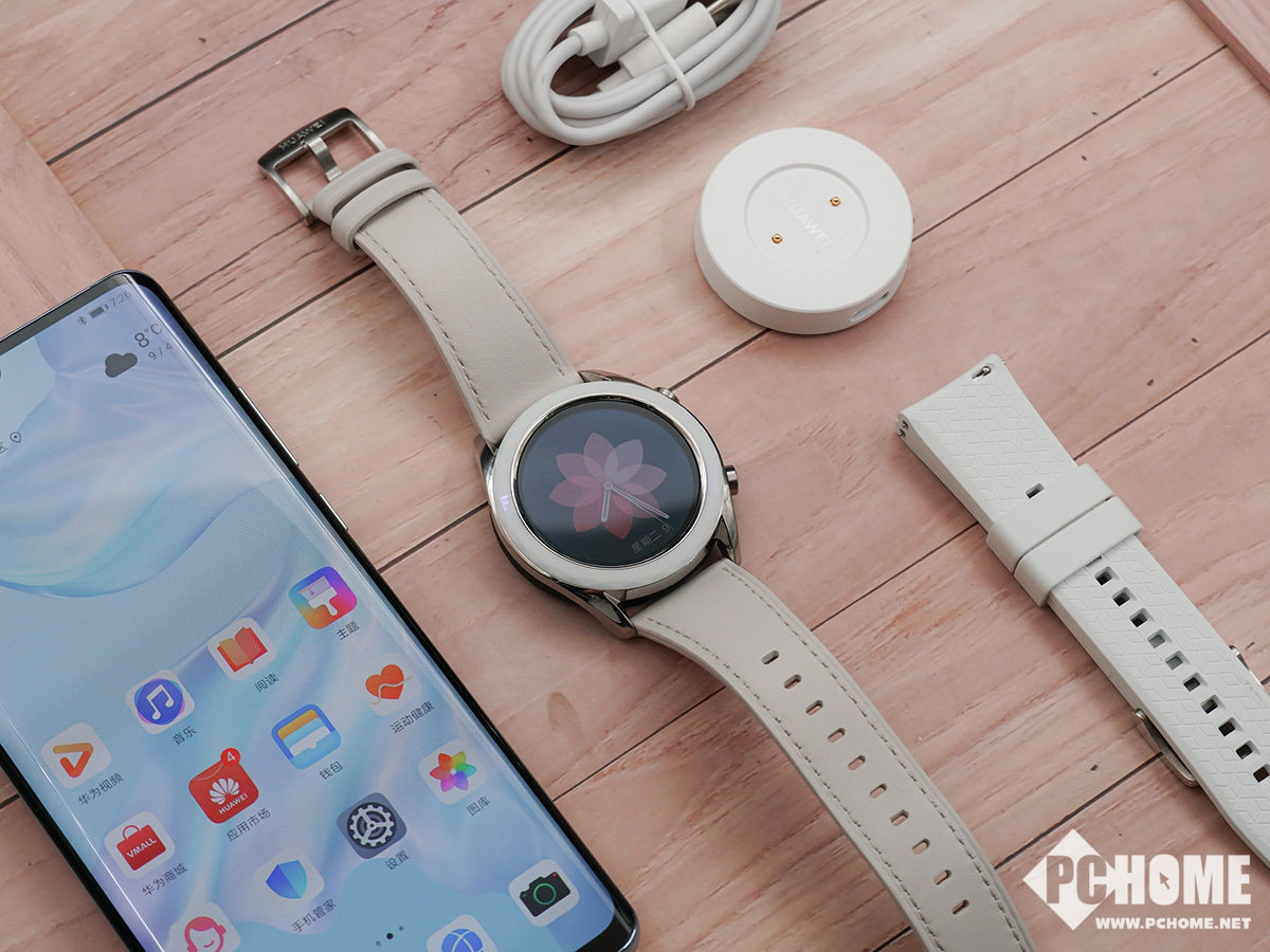 续航方面,雅致款能做到一周一充。充电器采用了磁吸式的设计,也就是靠近手表底盘时,会自动吸附,同时还可以看到充电接口采用了当下流行的Type-C接口。