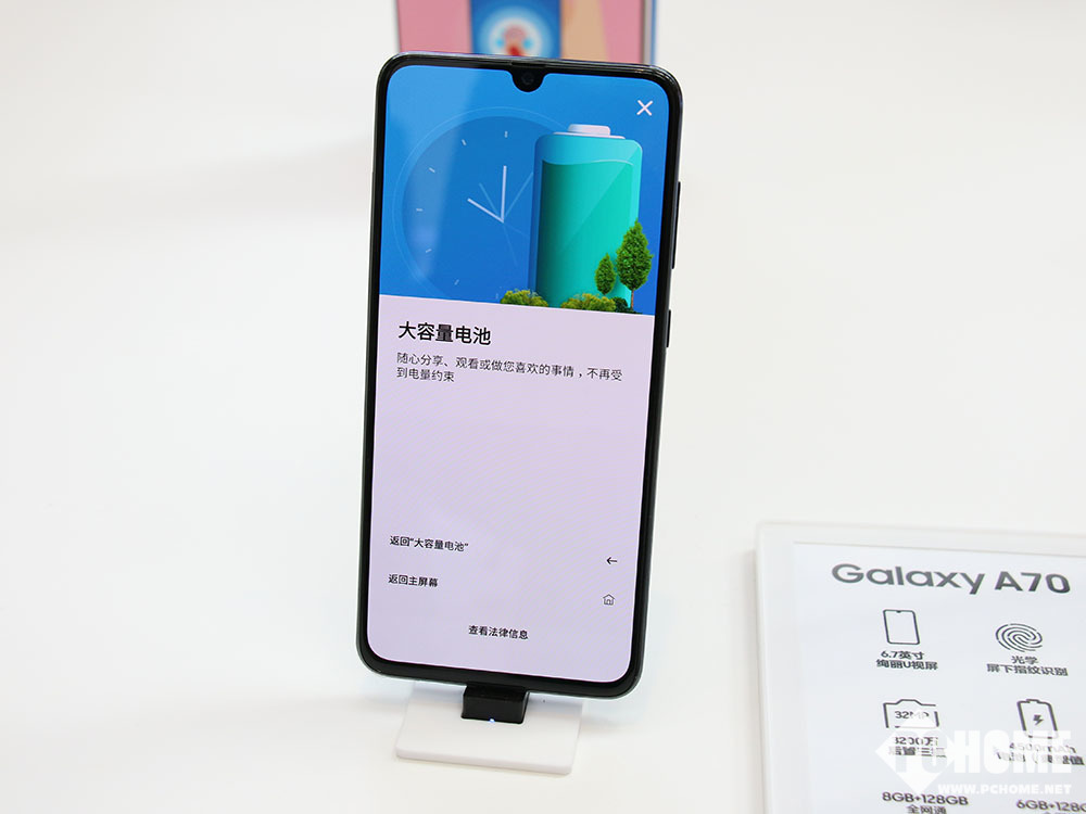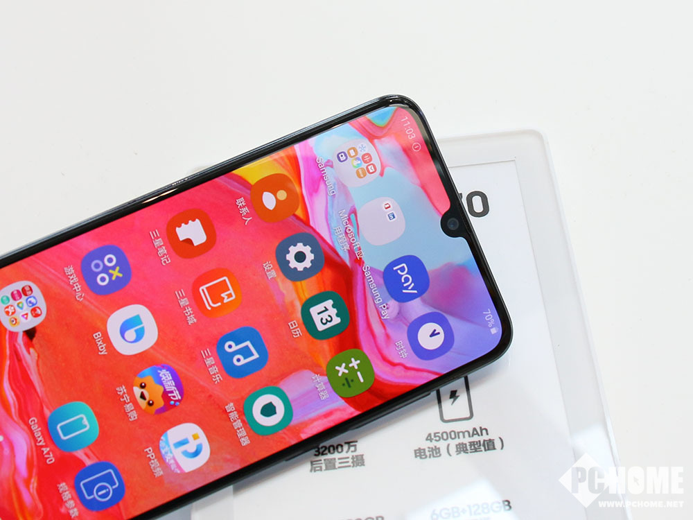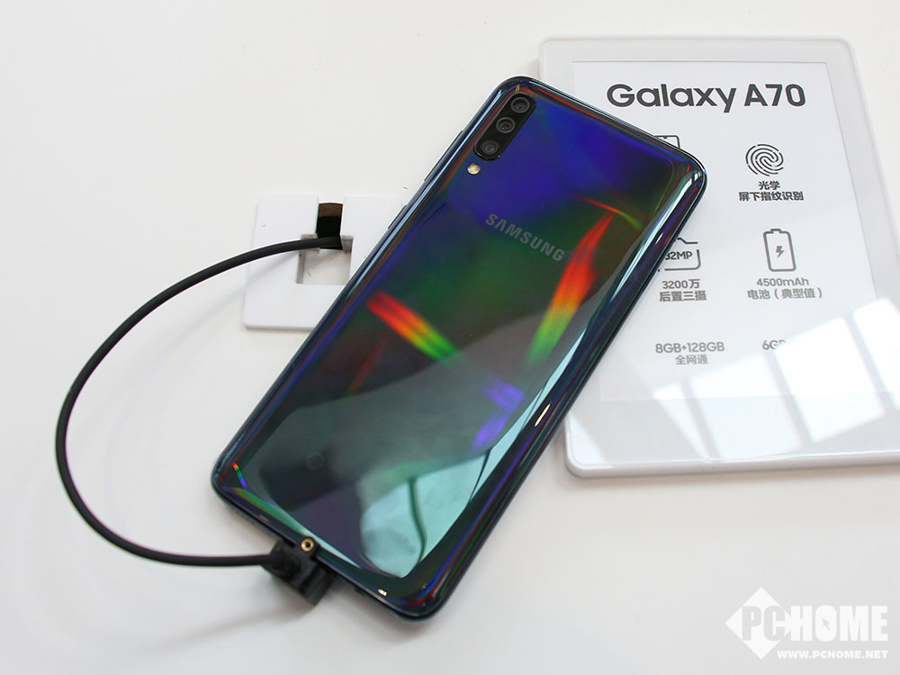 三星Galaxy A70搭载的6.7英寸绚丽U视屏,采用20:9的屏幕比例,屏占比有了很大的提升,共有三种机身配色,包括今年流行的珊瑚橙,镭射黑和珍珠白,其机身的时尚棱镜效果能够跟随光的方向,反射出眩目的渐变色彩。在交互上,Galaxy A70采用光学屏下指纹识别技术,让屏幕解锁更加安全便捷。