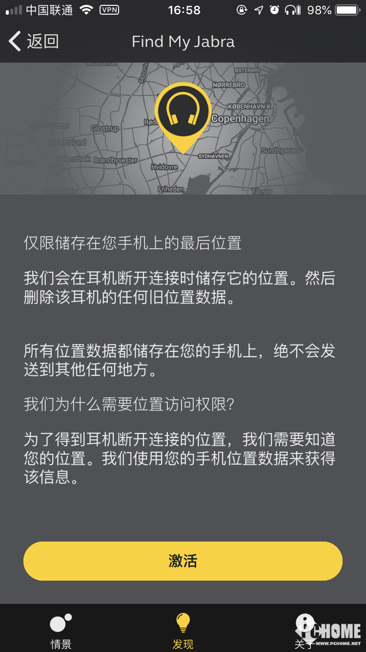 在App中还可以实现“Find My Jabra”的耳机查找功能,通过手机与耳机的蓝牙连接实现定位并记录断开连接前的最后一次使用位置,以便耳机丢失情况下可以更快速精确地进行搜寻。