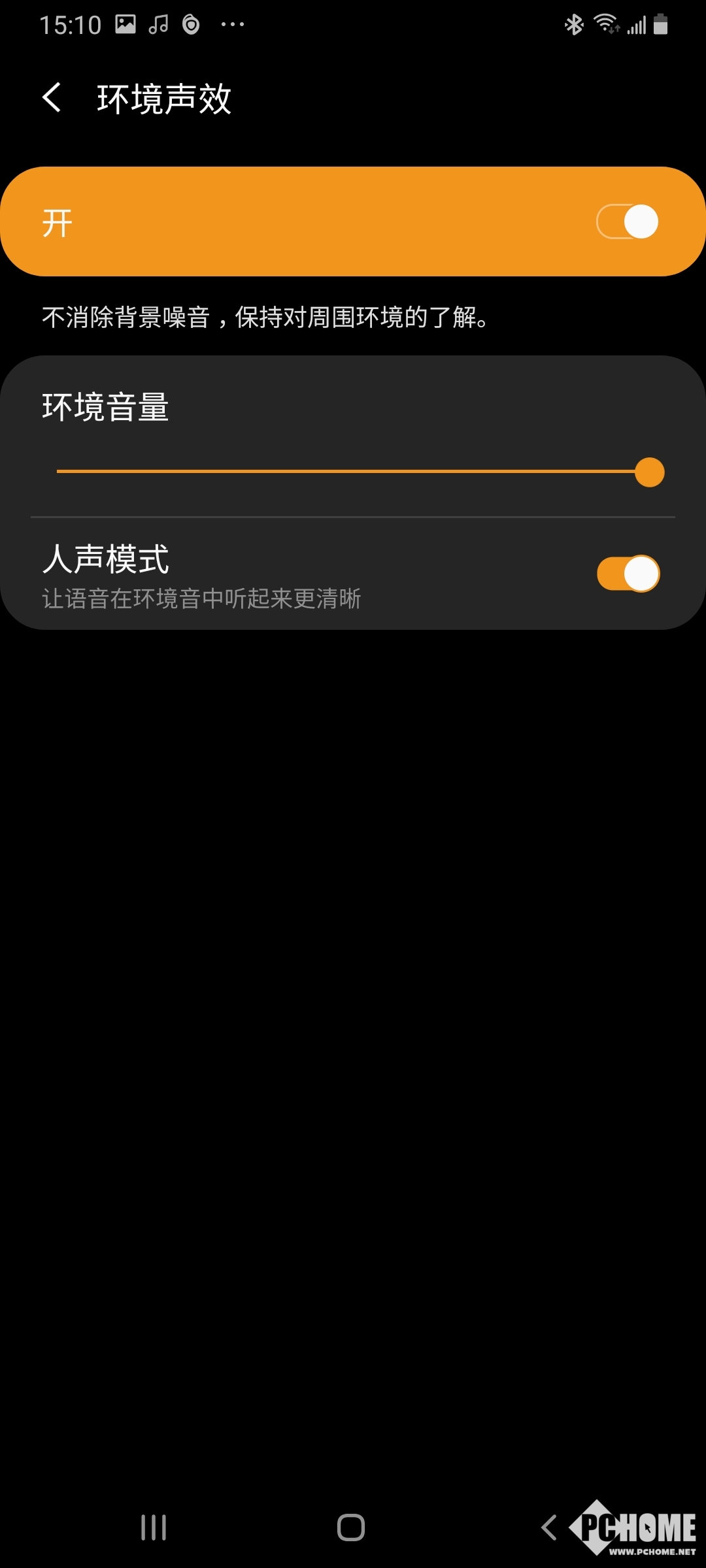 相信前几个功能大家都非常熟悉了,我们这里来着重介绍一下环境音效功能,而这个功能也是我认为Buds 2019上最具亮点的一个功能。