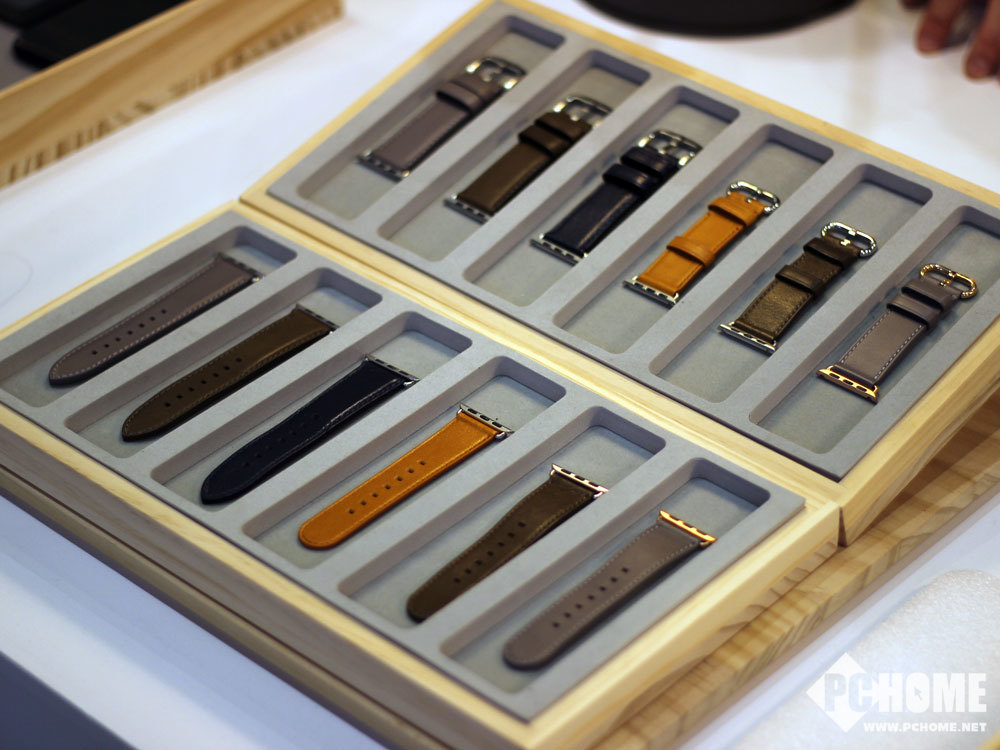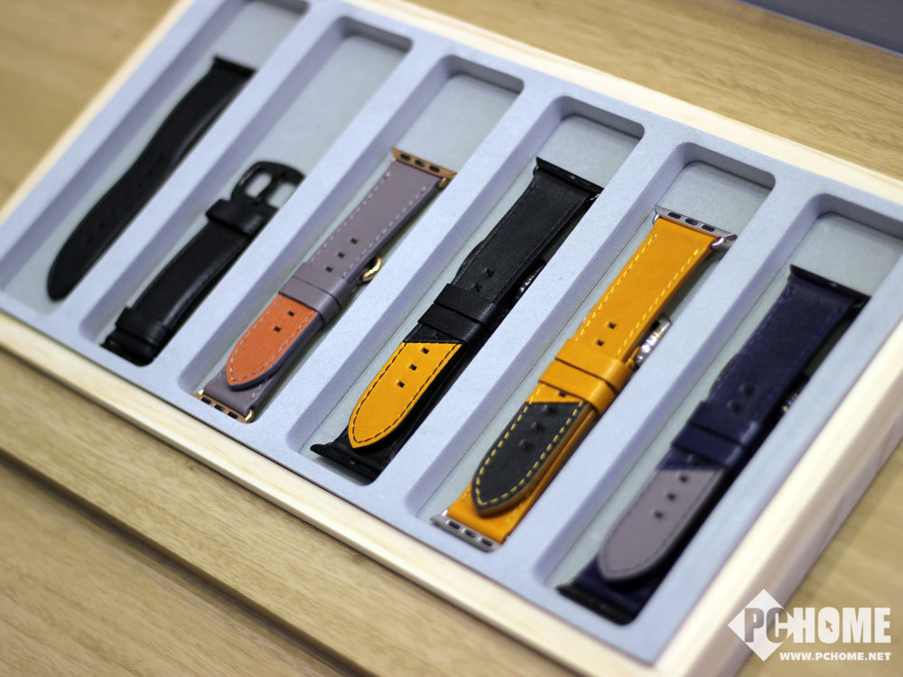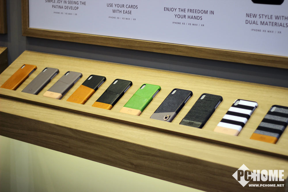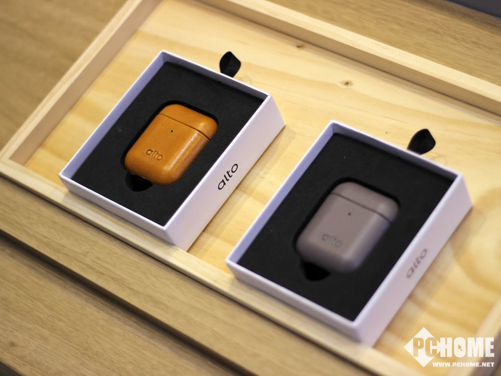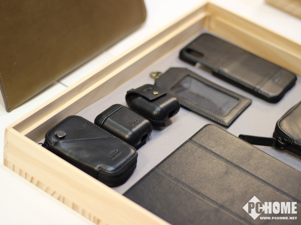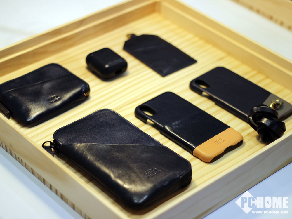 在展台上Alto展示了iPhone XS系列保护壳,在原本优质的意大利皮革之上加入了一层卡片层,可以临时存放一些公交卡之类的卡片。而AirPods和Apple Watch的保护套和表带则同样采用了皮革的材质,质感非常的好。
