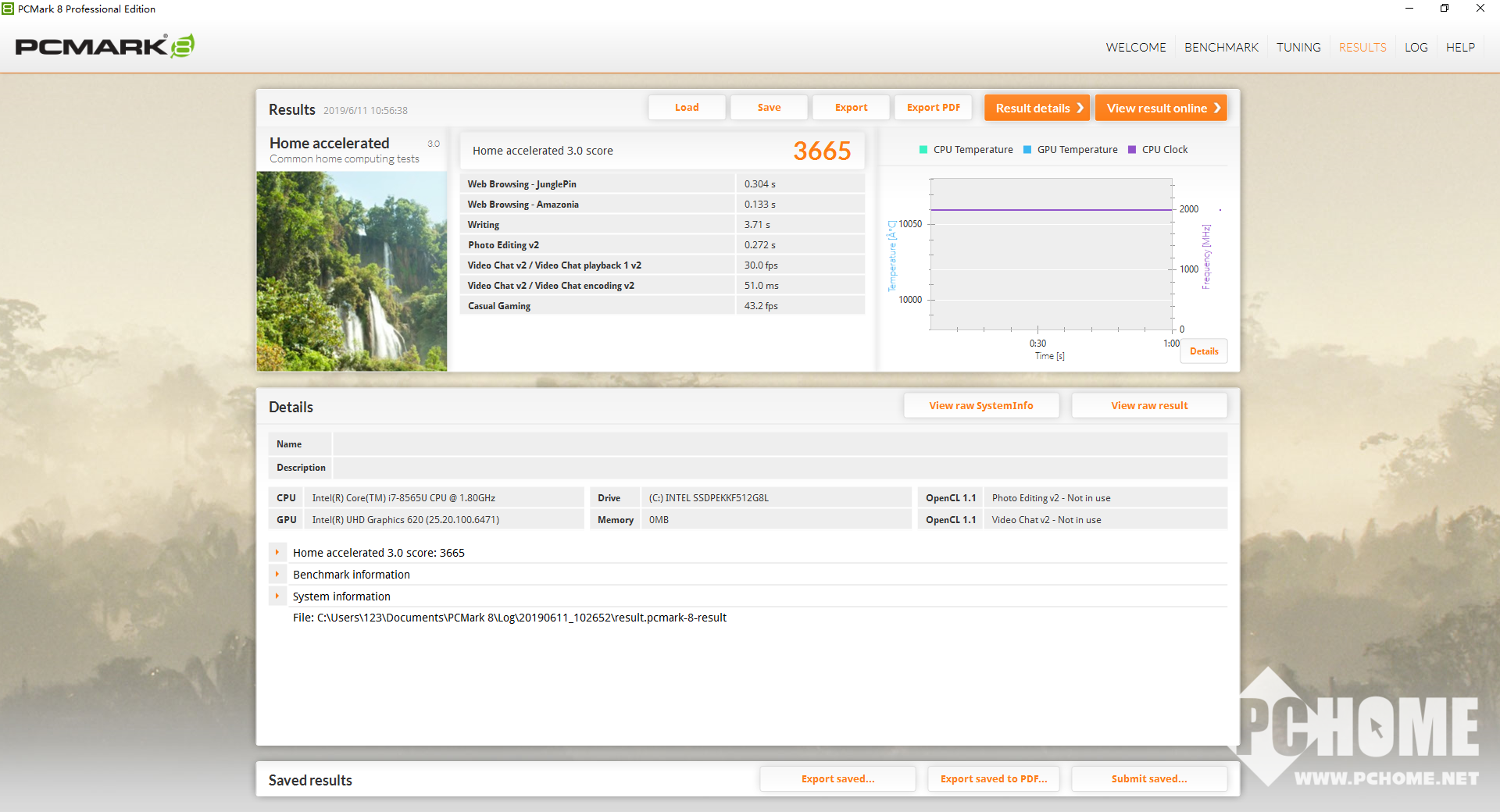 PCMark 8是新一代系统综合性能测试软件,可以衡量各种类型PC的综合性能。PCmark8中囊括了非常大的测试数据量,包含七个不同的测试环节,由总共25个独立工作负载组成,涵盖了存储、 计算、图像与视频处理、网络浏览、游戏等PC日常应用的方方面面来评测我们的硬件能力。