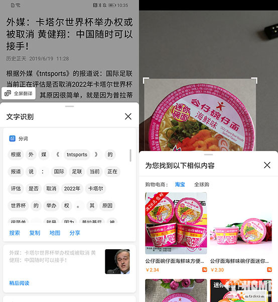 EMUI的智慧视觉识别范围覆盖一日三餐、衣食住行、花草树木等等,并可根据识别内容提供信息帮助。