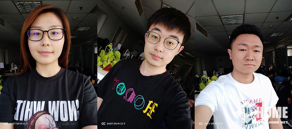 小米CC9在自拍上还有另一项绝活,那就是全景自拍功能,它能够在前置自拍上实现超大广角拍照。通过旋转手机连续拍照三张照片,之后合成为一张全景照片,视角范围能够扩大近一倍。这样不论是多人自拍,还是在名胜古迹之前的自拍留念,都能将人和景全部尽收其中。样张的对比可以看到,通常自拍甚至无法将三人拍全,而全景自拍则能够轻松的将多人拍全。