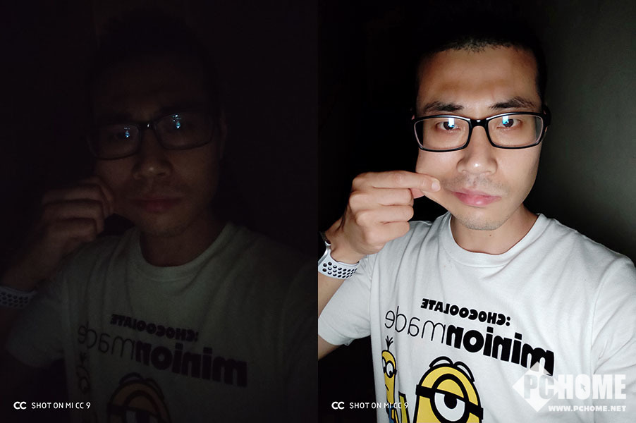 暗光环境的自拍一直是手机拍照的难题,小米CC9在这方面的表现很不错。3200万像素的自拍镜头,是支持像素四合一技术的,1.6μm大像素在暗光自拍上有着充分的进光量。即使是在极限的暗光环境下,小米CC9也能够通过屏幕补光来确保光线的充足。通过两张样张的对比可以看出,经过补光后的自拍效果相当优秀,人物表现十分清晰自然,单看一张照片的话,我们完全不会觉得这是在全黑的环境下所进行的拍照。